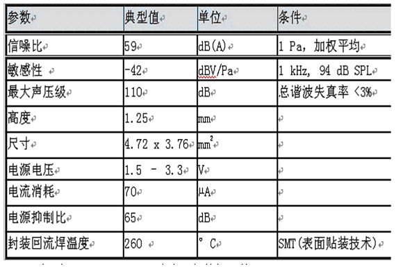 表1:新型SMM310硅基MEMS麥克風的特性參數(shù)。
