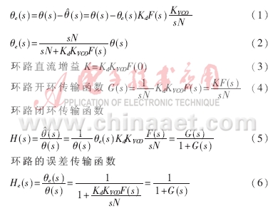 假定檢相特性為正弦形,可求出鎖相環(huán)路的開(kāi)環(huán)傳遞函數(shù)、閉環(huán)傳遞函數(shù),以及誤差傳輸函數(shù)等。