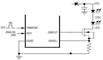然后用一個PWM信號加到MOS管的柵極,以快速地開關(guān)這串LED。從而實現(xiàn)調(diào)光。也有不少恒流芯片本身就帶一個PWM的接口,可以直接接受PWM信號,再輸出控制MOS開關(guān)管。那么這種PWM調(diào)光方法有那些優(yōu)缺點呢?