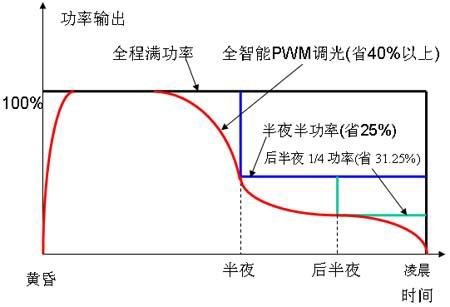 一般來說,路燈到半夜以后就沒有什么用處了,所以通常的做法是12點以后關(guān)燈或者開一半亮度。但是最合理的做法是根據(jù)交通流量來控制路燈的亮度,甚至是完全自適應(yīng)地控制亮度。圖10就是根據(jù)當(dāng)?shù)亟煌髁康慕y(tǒng)計值來調(diào)節(jié)路燈亮度的一個例子。