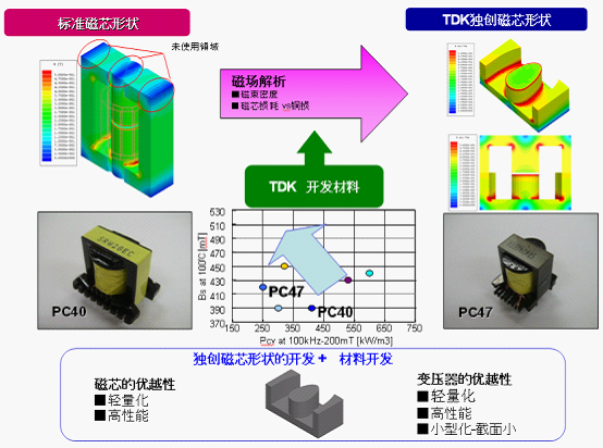 圖7:采用PC47材料的TDK獨有的磁芯的形狀