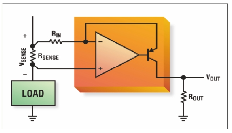 圖5:基本的高端電流檢測放大器。