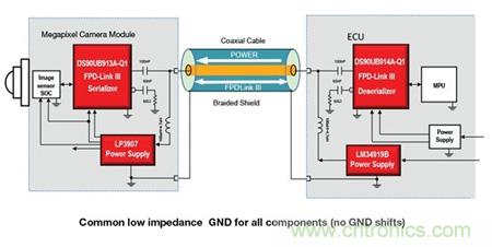 高速串行數(shù)字鏈路連接視頻組件,可在攝像頭的數(shù)字成像器與數(shù)字 LCD 顯示屏之間實現(xiàn)無縫連接。汽車視頻鏈路中部署的最常用及最可靠高速數(shù)字接口技術(shù)基于 ANSI/TIA/EIA-644-A 低電壓差分信號 (LVDS) 標準。LVDS 可提供一個穩(wěn)健的數(shù)據(jù)傳輸標準,支持遠距離、低功耗、高噪聲抑制性以及低 EMI。LVDS 采用差分方式(而非接地所參考的單端信號)實現(xiàn)所需的鏈路屬性。