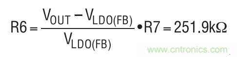 通過將 R7 設(shè)定為 80.6k,并計(jì)算 R6 阻值,把 LDO 后備模式輸出電壓設(shè)定為3.3V。VLDO(FB)為0.8V。