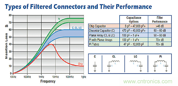 圖1:多種濾波器類型,旨在消除系統(tǒng)中的EMI