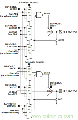 PPG用于產(chǎn)生超聲波的激勵(lì)信號(hào)。作為信號(hào)源頭,該功能模塊提供靈活的參數(shù)設(shè)置。超聲波的激勵(lì)頻率可設(shè)定,覆蓋范圍從132KHz到2.5MHz,我們可以針對(duì)不同特性的換能器設(shè)定相應(yīng)的脈沖頻率。信號(hào)脈沖數(shù)量可以從單個(gè)脈沖到127個(gè)脈沖。在激勵(lì)脈沖結(jié)束時(shí),我們也可以通過(guò)設(shè)定180度相位的反向脈沖來(lái)抵消換能器的超聲波殘余信號(hào),最大反向脈沖最高可以到15個(gè)。激勵(lì)脈沖的極性可以通過(guò)寄存器設(shè)定,如下圖5所示。