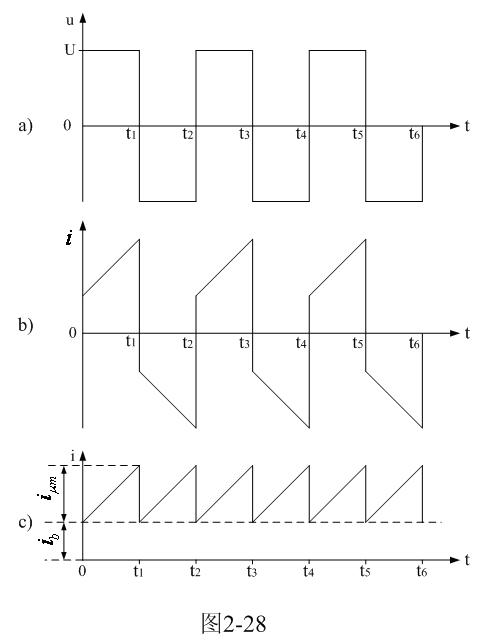 根據(jù)(2-65)式和(2-66)式以及圖2-19和圖2-20的分析結(jié)果,我們可以用圖2-27電路來(lái)測(cè)試雙激式開關(guān)變壓器的磁滯損耗和渦流損耗。與圖2-25的工作原理基本相同,圖2-27的主要工作原理是,在變壓器初級(jí)線圈兩端加一序列雙極性電壓方波,然后測(cè)試流過(guò)變壓器初級(jí)線圈的電流;