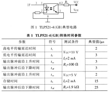 通常情況下,單芯片集成多路光耦的器件速度都比較慢,而速度快的器件大多都是單路的,大量的隔離器件需要占用很大布板面積,也使得設(shè)計(jì)的成本大大增加。在設(shè)計(jì)中,受電路板尺寸、傳輸速度、設(shè)計(jì)成本等因素限制,無法選用速度上非常占優(yōu)勢的單路光耦器件,在此選用TOSHIBA公司的TLP521-4。