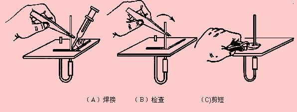4.用鑷子轉(zhuǎn)動引線,確認(rèn)不松動,然后可用偏口鉗剪去多余的引線。