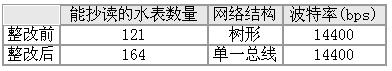 (1)網(wǎng)絡(luò)布局不合理。這時(shí)的結(jié)構(gòu)近似樹形,但RS-485總線不支持環(huán)形或星形網(wǎng)絡(luò)。同時(shí),由于總線的不同區(qū)段采用了不同電纜,某一段總線上有過多收發(fā)器緊靠在一起安裝,或者是有過長的分支線引出總線,都會(huì)出現(xiàn)阻抗不連續(xù)點(diǎn)。所以應(yīng)該提供一條單一連續(xù)的信號通道作為總線。根據(jù)這一原則對網(wǎng)絡(luò)進(jìn)行了大的整改,采用單一總線將各個(gè)節(jié)點(diǎn)串接起來,同時(shí)進(jìn)行接地處理,如圖2所示。再次集抄的結(jié)果比先前要好,但還是有部分水表抄讀不到或數(shù)據(jù)不穩(wěn)定,未達(dá)到預(yù)期效果。表1是整改前后水表抄讀的情況。