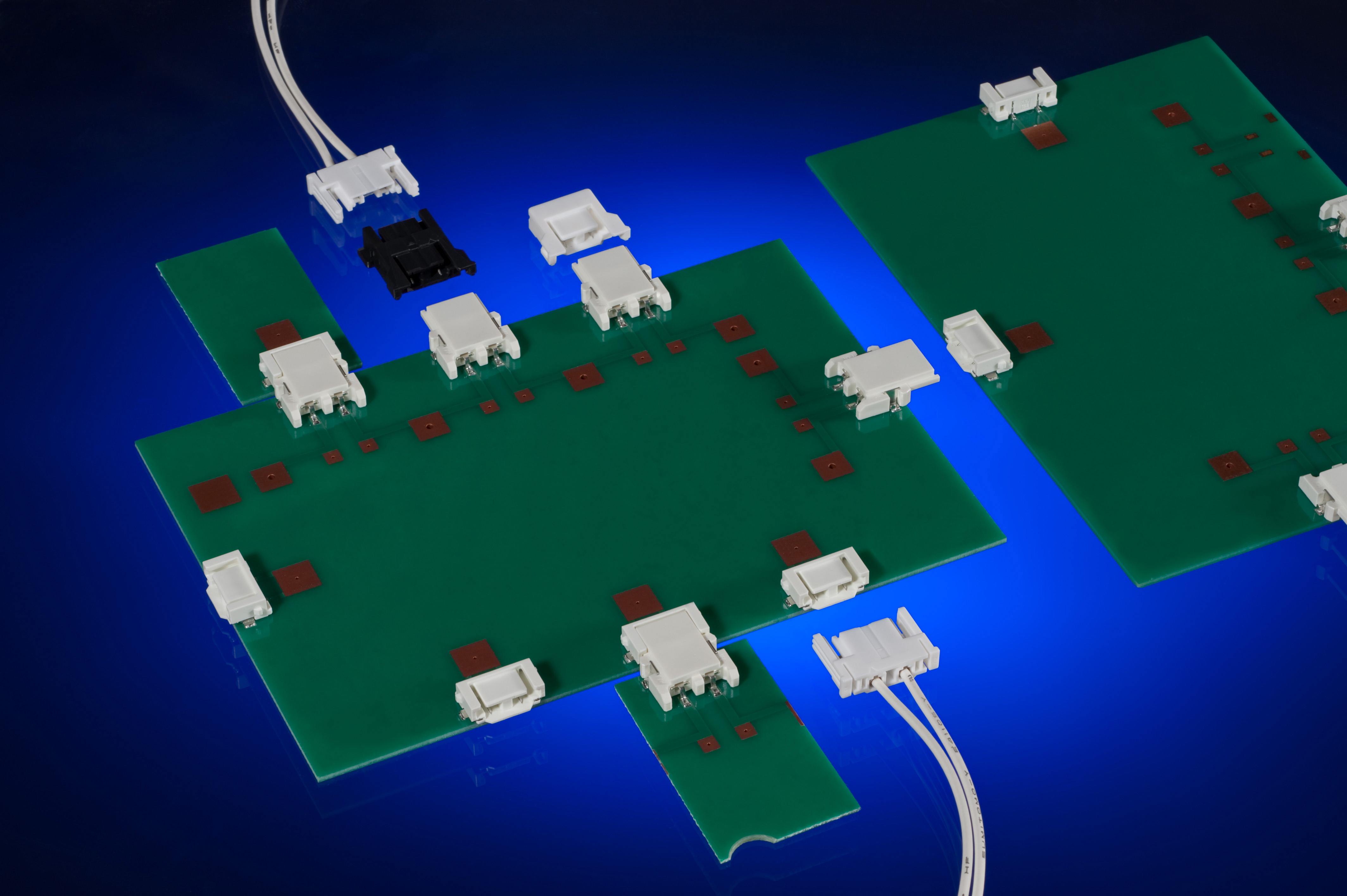 Flexi-Mate連接器系統(tǒng)包括共面板至板連接器,用于扣合包含LED燈的小型面板,并提供可用于連接LED板和主電源板的線至板連接選件。而端接連接器可用作完成開環(huán)信號的短路裝置。Flexi-Mate連接器系統(tǒng)目前可以用于普通兩路設計,主要特性包括實現(xiàn)安全電氣接觸的雙觸點端子設計,以及節(jié)省空間的穩(wěn)固的線至板連接器正面鎖(positive side lock)。PCB版本上的插配導引可有助于在插拔時順利插配并保護接線端子。Flexi-Mate連接器系統(tǒng)現(xiàn)提供采用低鹵素和非低鹵素材料版本,以配合不同的環(huán)保和市場要求。