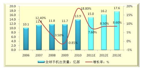 2006-2013年全球手機(jī)出貨量及未來(lái)發(fā)展趨勢(shì)