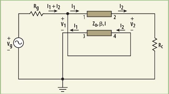 這里:Rg=源阻抗、Rc=負(fù)載阻抗、Zo=傳輸線(xiàn)特性阻抗、βl=相位因子、l=kλ=傳輸線(xiàn)長(zhǎng)度(這里λ是波長(zhǎng),k是小數(shù)值)。
