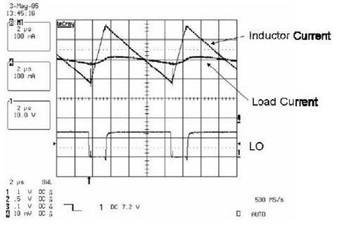 下圖, 說明了電感減小時,在輸出電壓的變化范圍內,負載電流的波動明顯增大。