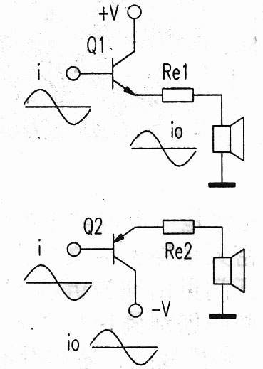 甲類功放多采用NPN與PNP配對(duì)的推挽式工作方式。推挽式甲類功放電路,可以看成是由2個(gè)單管式甲類射極器組成。