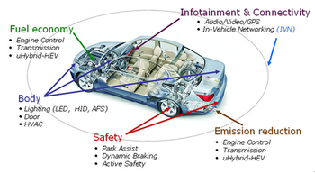 隨著西方汽車市場(chǎng)需求的復(fù)蘇以及發(fā)展中經(jīng)濟(jì)體車輛數(shù)目的持續(xù)增長(zhǎng)使燃料消耗和污染不斷增加,政府和制造商都在積極探索改善燃油經(jīng)濟(jì)性以節(jié)約能源、減少排放的途徑,汽車中越來越多的電子功能也使半導(dǎo)體元件在車輛中的比重不斷激增。面對(duì)環(huán)保和豐富消費(fèi)者體驗(yàn)的雙重挑戰(zhàn),半導(dǎo)體制造商正在利用其技術(shù)專長(zhǎng)開發(fā)各種符合汽車規(guī)范的解決方案。