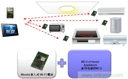 只需加村田的嵌入式Wi-Fi模塊,就可以用手中的手機或者Pad隨時隨地控制家中的電器。