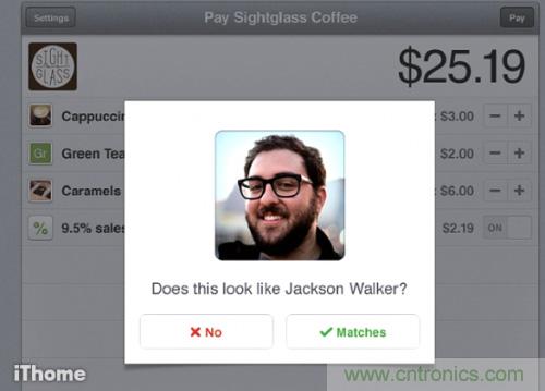 Square是另一個透過云端無實體卡片交易的提倡者,這個服務(wù)的目的是為了改造傳統(tǒng)的POS 終端機(jī)和庫存系統(tǒng),一切都是從使用插在手機(jī)耳機(jī)孔的精美塑膠卡片刷卡裝置開始,Square 最近結(jié)束Square Wallet 這項支付產(chǎn)品,它是Register 應(yīng)用程式的搭配產(chǎn)品,使用者可以連結(jié)信用卡或金融簽帳卡,然后只要在喜歡的商家打卡,結(jié)帳時提供姓名,他的面孔和名字就會出現(xiàn)在商家的Register應(yīng)用程式上(下圖),是PayPal 的地理定位支付功能的先驅(qū),Square轉(zhuǎn)換方向,發(fā)表了一項全新產(chǎn)品,叫做Square Order,能讓使用者透過優(yōu)雅的訂購流程和單擊結(jié)帳跟附近的餐廳點(diǎn)餐,他們只要走到或開車到商家取餐。