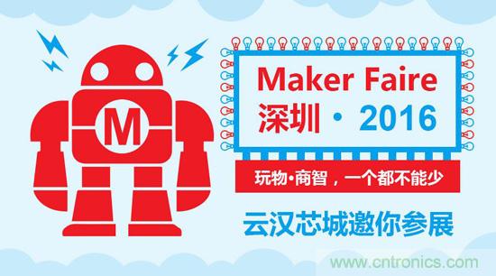 【導(dǎo)讀】2016年10月21日-10月23日Maker Faire在深圳南山蛇口海上世界舉辦,云漢芯城作為合作伙伴參展,為大家準(zhǔn)備各種抽獎及現(xiàn)場開發(fā)板特賣等活動,屆時我們不見不散,一起嗨翻天。