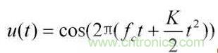 式中fe為載波頻率,K=B/T是調(diào)頻斜率,于是,信號的瞬時頻率為。