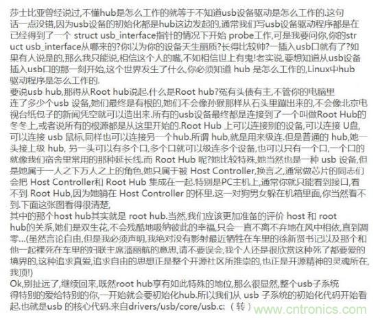 通常你就只能看到接口,看不到 Root Hub,因為它在 Host Controller 的內(nèi)部。下面這張圖看得很清楚,其中的那個host hub其實就是 root hub.