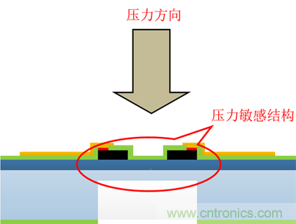 當(dāng)壓力敏感結(jié)構(gòu)受到氣壓壓力時,壓敏電阻的阻值發(fā)生變化,進(jìn)而引起輸出電壓Vout發(fā)生變化,通過輸出電壓值與壓敏電阻的阻值變化的關(guān)系,實現(xiàn)壓力值的測量。