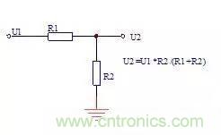 當(dāng)一個(gè)電壓U1太高時(shí),可以用兩只電阻構(gòu)成分壓電路,降低電壓為U2,U2符合電阻分壓公式U2=U1*R2/(R1+R2) ,這種電阻在電路中一般稱(chēng)為分壓電阻。