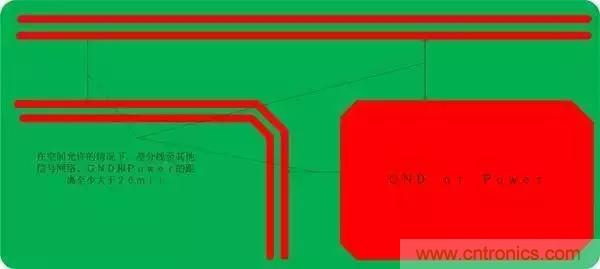 6.為了減少串擾,在空間允許的情況下,其他信號網(wǎng)絡及地離差分線的間距至少20mil(20mil是經(jīng)驗值),覆地與差分線的距離過近將對差分線的阻抗產生影響;