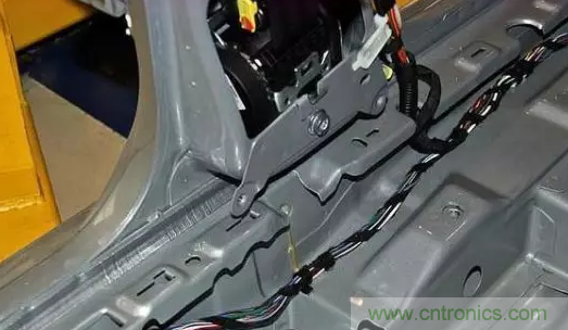 高爾夫的地板線束如下圖所示。使用的是PVC膠帶花纏方案。B柱處線束做了一個小的塑料支架進行線束走向固話,防止與安全帶干涉。大家設(shè)計過程中可以參考這種方案。