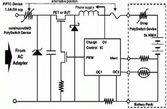 便攜式電子設(shè)備,例如蜂窩電話、PDA和手提電腦的電源都有特殊的過(guò)流保護(hù)要求。這些設(shè)備一般是通過(guò)AC/DC電源適配器供(充)電,將市電或未經(jīng)穩(wěn)壓的直流電轉(zhuǎn)變?yōu)楹线m的低壓直流電。由于越來(lái)越多的人開(kāi)始在零配件市場(chǎng)上購(gòu)買電源適配器以及通用充電器,將不兼容或有故障的電源適配器應(yīng)用于便攜式設(shè)備的可能性也就大大增加。由于電源適配器的電壓、極性以及電流都可能與該設(shè)備的電路規(guī)范不相吻合,從而將會(huì)導(dǎo)致?lián)p壞甚至帶來(lái)安全隱患。