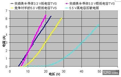 圖5:不同ESD保護(hù)元件的TLP測試I-V曲線