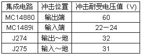 表1 集成電路的沖擊耐受電壓