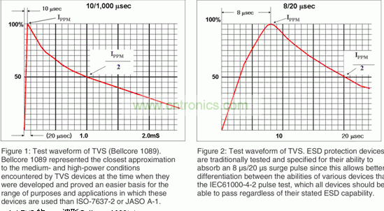 圖1:TVS的測試波形(Bellcore 1089) 圖2:TVS的波形