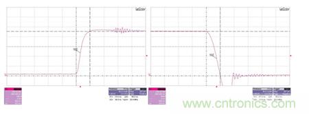 圖3展示了對0.9V輸出(被15A的負載階躍以300A/us的速率擾動)的瞬態(tài)響應。
