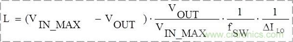 為選擇適當(dāng)?shù)碾姼?,通常可假定電流紋波ΔILO為電感平均電流的30%,然后根據(jù)下面的公式直接計算出合適的電感值。