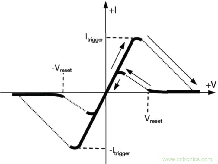 在限制過壓的過程中,受保護電路短暫暴露在高壓下,因而在切換到低壓保護打開狀態(tài)之前,TISP器件處在擊穿區(qū)域。TBU將保護后端電路,防止由于這種高電壓導致的高電流造成損壞。當轉(zhuǎn)移電流降低到臨界值以下時,TISP器件自動重置,以便恢復正常系統(tǒng)運行。