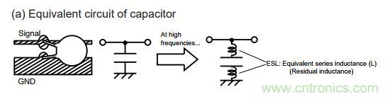 一般來(lái)說(shuō),直插件的引線較長(zhǎng),其寄生電感比SMD大;電解電容內(nèi)部有大量卷繞結(jié)構(gòu)的鋁箔,寄生電感比其它工藝的電容大。1206尺寸的MLCC內(nèi)部電極面積和焊接端子截面明顯比0805大,所以尺寸越大的MLCC,自諧振頻率就越低。