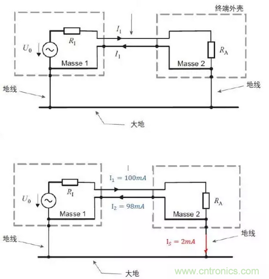 知曉這幾個(gè)概念后,我們來看看IEC給出的有關(guān)TN-C和TT系統(tǒng)的原圖。注意,這兩幅圖是不容置疑的,是有關(guān)接地系統(tǒng)的權(quán)威解釋。