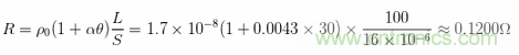 其次,我們需要知道保護(hù)性中性線電纜的電阻是多少。這個(gè)值可以根據(jù)具體線路參數(shù)來考慮。方便起見,不妨先規(guī)定這條保護(hù)性中性線電纜的長度是100米,電纜芯線截面是16平方毫米,它的工作溫度是30攝氏度,則它的電阻為: