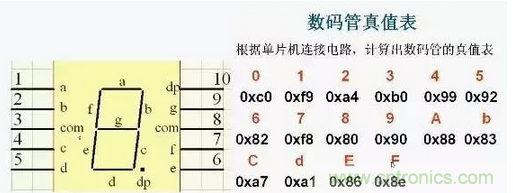 數(shù)碼管點亮形成的數(shù)字由a,b,c,d,e,f,e,dp(小數(shù)點)構成,字模及真值表如上圖。