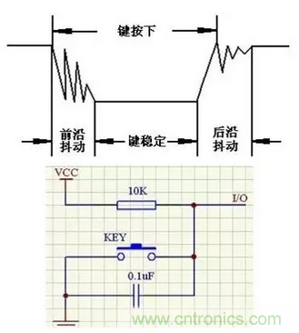 按鍵也是機械裝置,在按下或放開的一瞬間會產(chǎn)生抖動,如下圖: