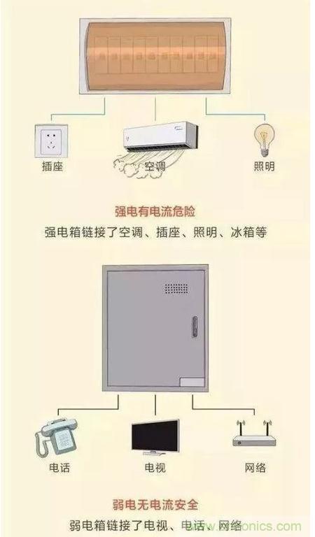 其中的強(qiáng)電是存在電流危險(xiǎn)的,主要包括有空調(diào)、插座、照明、冰箱等;而弱電是沒(méi)有電流安全的,涵蓋了電視、電話(huà)、網(wǎng)絡(luò)。