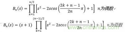 根據(jù)此特性要求,巴特沃斯低通濾波器的傳遞函數(shù)可由Butterworth多項(xiàng)式來(lái)實(shí)現(xiàn),即