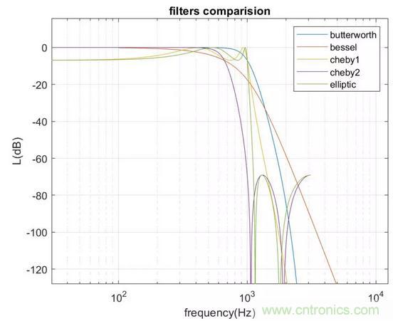 雖然在通帶和阻帶內(nèi)都沒(méi)有波動(dòng),但是保留通帶信號(hào)的能力以及過(guò)渡帶衰減速度都沒(méi)有巴特沃斯卓越;