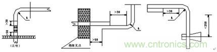 (8)母線寬度大和長(zhǎng)度短都不能曲立彎,進(jìn)出線母排寬度差比較大時(shí),可在不影響搭接面積的前提下,允許有過(guò)度母排,偏向母線的一側(cè)或改變母線的連接。見(jiàn)下圖