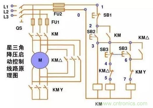 星三角我上圖分析過了,控制電機正反轉也分析過了。兩圖合一就是這個圖了,喜歡的朋友可以自己學著分析一下。