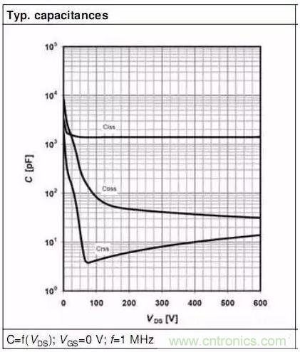 Ciss, Coss, Crss的容值都是隨著VDS電壓改變而改變的,如下圖: