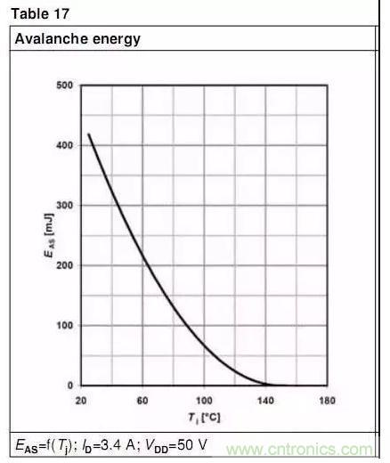 計(jì)算出來EAR后,對(duì)比datasheet上的EAR值,若在datasheet的范圍內(nèi),則可認(rèn)為是安全的(此處默認(rèn)重復(fù)雪崩電流<IAR),同時(shí)也得考慮結(jié)溫的影響