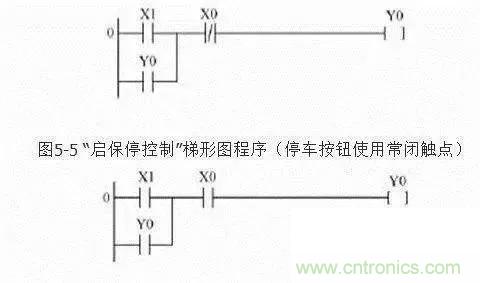 輸入端的電氣原理圖中停止按鈕SB0用常閉觸點,串在控制線中,用于停機控制。 啟動按鈕SB1用常開觸點。在設(shè)計的兩個梯形圖完成的控制功能相同,但停機信號X0使用的觸點類型不同,那么連接在端點的外部停機按鈕觸點類型也就不同