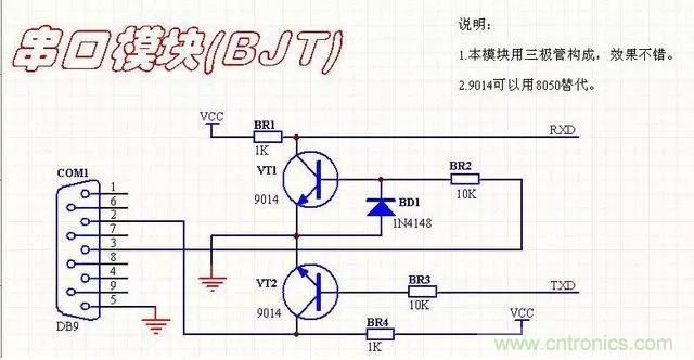 本電路是用三極管搭的,電路簡(jiǎn)單,成本低,但是問題,一般在低波特率下是非常好的。